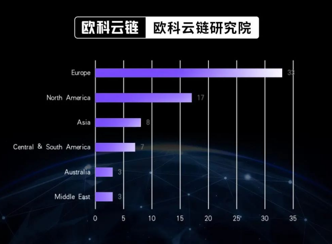 10月19日,欧科云链研究院正式对外发布《全球银行业加密版图(2023)》报告,该报告显示,截至2023年10月,全球有超过70家银行从不同路径参与和探索虚拟资产市场,其中70%以上集中在欧洲和北美洲。