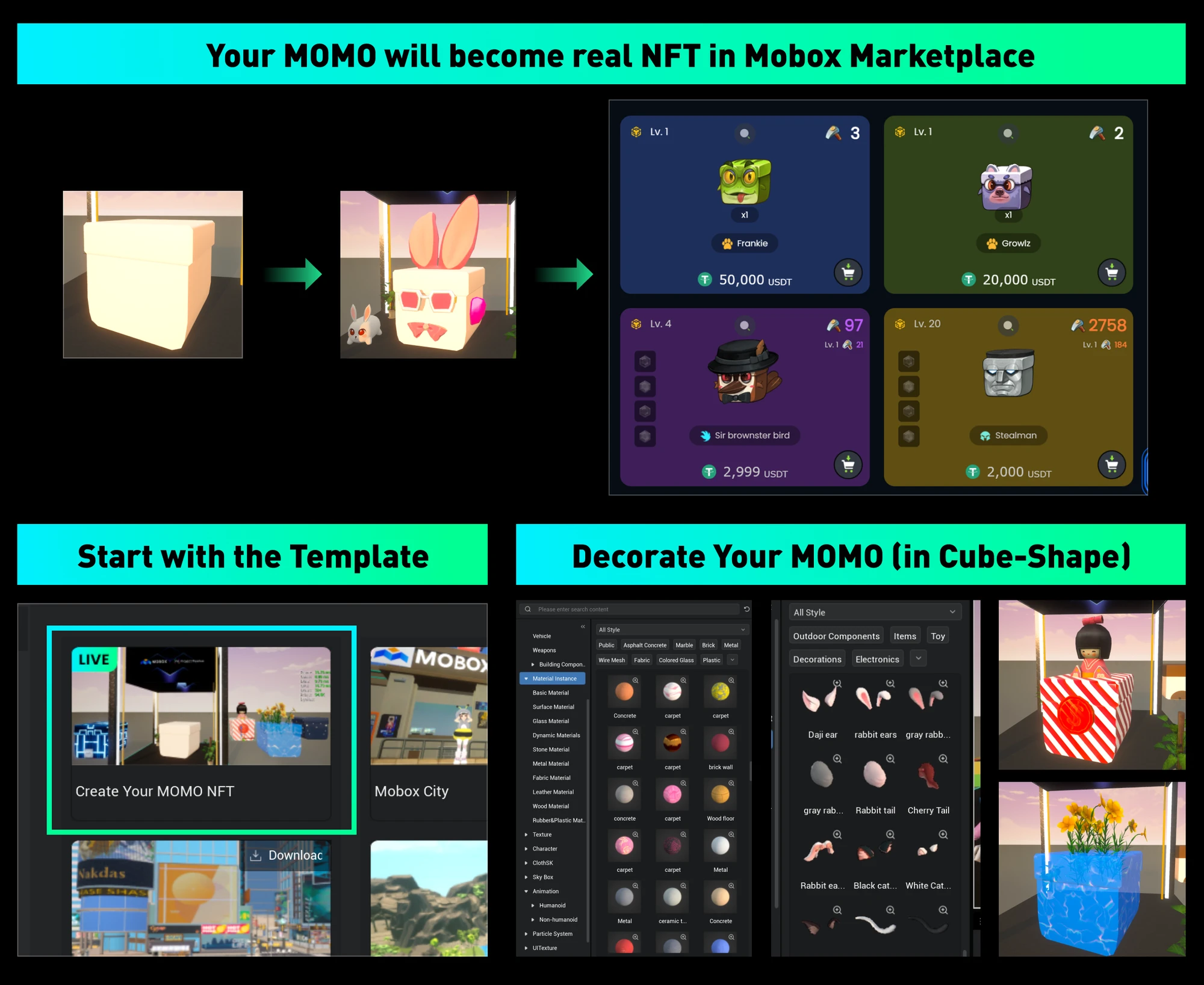 2) MBOX 代币用作统一链上资产价值的媒介,例如开启使用 P12 Editor 创建的角色、游戏场景和游戏物品。