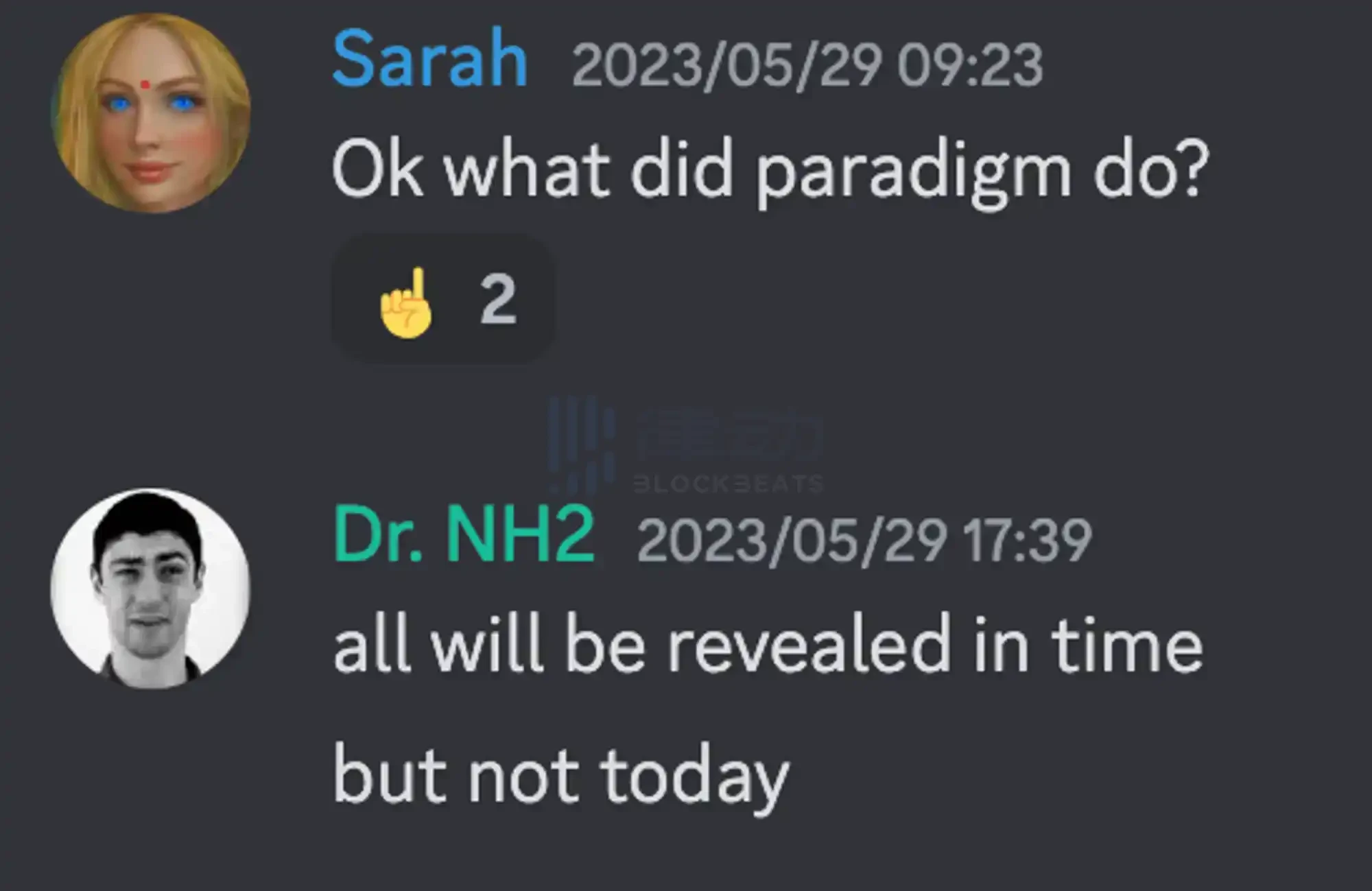 Sarah:Paradigm 做了什么?Ameen:会披露,但不是现在。来源:Discord