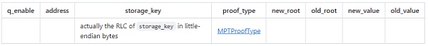Merkle Patricia Tree 是以太坊存储层使用的关键数据结构之一。在 Scroll 的 zkevm- Circuits 中,将原始 MPT 修改为zkTrie,它本质上是一个稀疏二进制 Merkle Patricia Trie。在 zkevm- Circuits 中,Scroll 使用 MPT 表来逐步跟踪 MPT 操作的状态转换。MPT 表具有以下表布局: