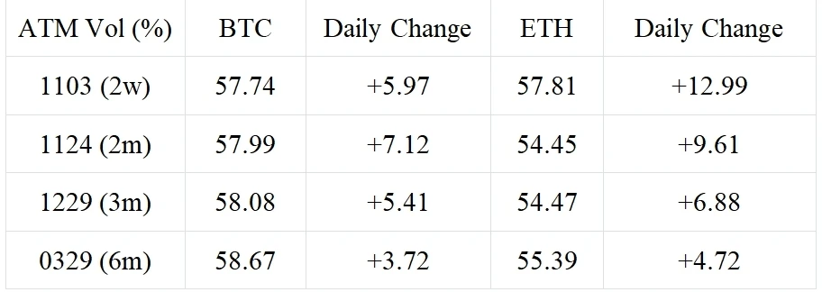 数字货币方面,BTC 收涨 2.5% 至 34707 美元,ETH 再次攀上 1800 关口,涨幅达到 4.42%。期权 ATM IV 震荡上行,Vol Skew 也随着价格的上涨而抬高,在 Risky 交易方面,BTC 24 Nov/29 Dec 的 Long Risky 再度得到建仓,ETH 上则仍是呈现出相对均衡的态势,买卖 Risky 的成交额分别达到 25 K/28 K ETH。