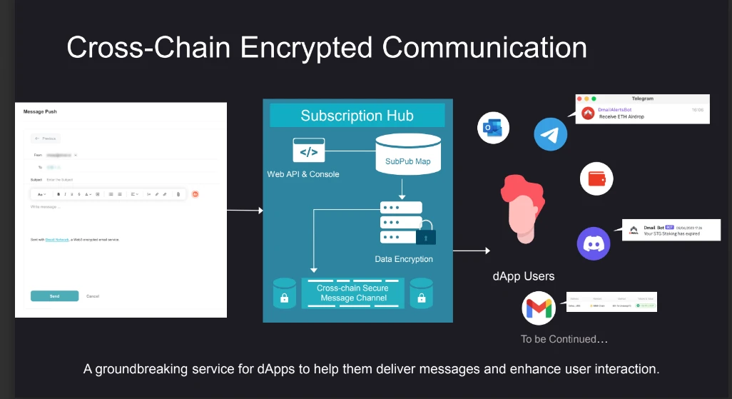 借助该平台,开发者可以向全部订阅用户的钱包地址或任何关联的去中心化身份发送点对点的重要信息或个性化通知,确保用户始终可以通过浏览器通知、Dmail、Telegram、外部邮箱等多渠道查看 dApps 的最新动态和提醒,从而增强用户体验,提高活跃度和转化率。