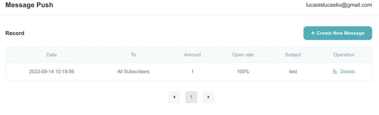 10. 用户完成订阅后,开发者便可进入消息推送页面(Message Push),点击创建新消息(Create New Message),开启推送流程