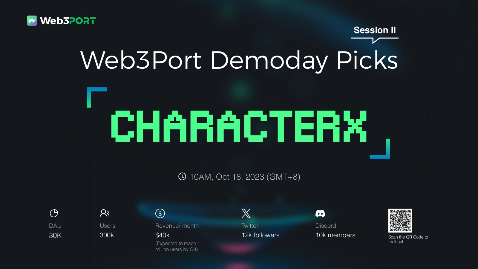 幸运的是,在市场风气偏于浮躁的当下,仍有一些怀抱着理想的项目方 builder 们在认真探寻着“AI + Crypto” 相结合的可能性。近期,我们通过 Web3Port Demoday 所发现一家精选项目 CharacterX 便是代表之一。