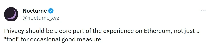 Nocturne Labs 宣称:“Nocturne 结合了 ZK、AA 和隐形地址的最佳想法,创建了具有内置资产隐私的以太坊账户的抽象。”