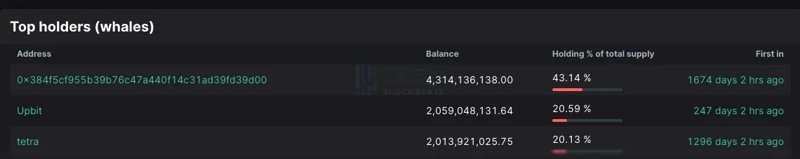不仅如此,在短短三天内,多个与 Upbit 有关的新建账户存入了总计 13 亿枚的 MXT。这使得 Upbit 存款钱包地址再次成为了最大的持币地址。