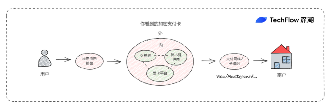 当用户看到一张带有某个加密货币交易所品牌,且打着 VISA 标志的卡片时,背后不为人知的,实际上是发卡方与技术提供商的合作模式。
