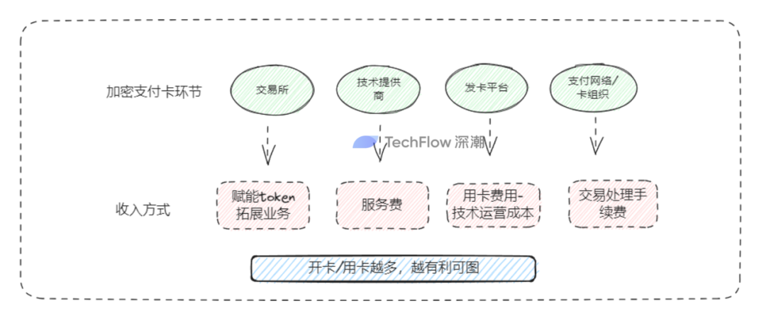 加密支付卡作为一种多方参与的业务形态,链条上的每一方都有盈利的诉求,也有各自的生意经。