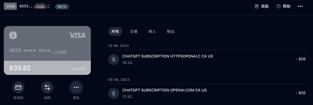 大部分加密支付卡的卡号以 4 或 5 开头,隶属于美国的卡组织(VISA / Master / 运通等),完美满足 OpenAI 对于卡种的要求,可以将加密货币转换成美金完成充值。
