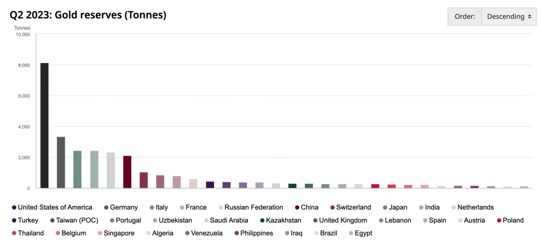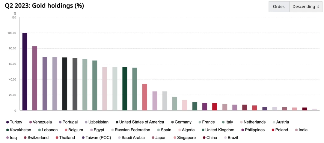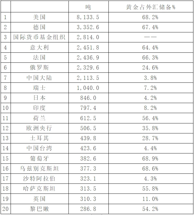 全球黄金储备前二十国家/组织