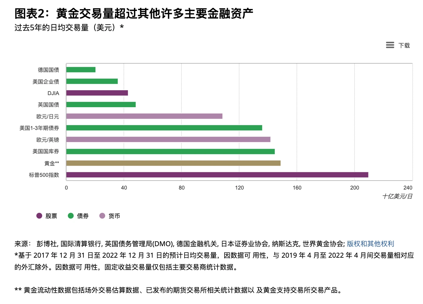 黄金日均交易量(单位:十亿美元)