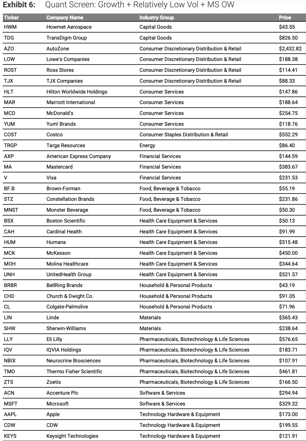 ( 4)低波动率增长: Microsoft , Apple 等知名科技股,以及调研机构认为受益于人工智能趋势的股票。