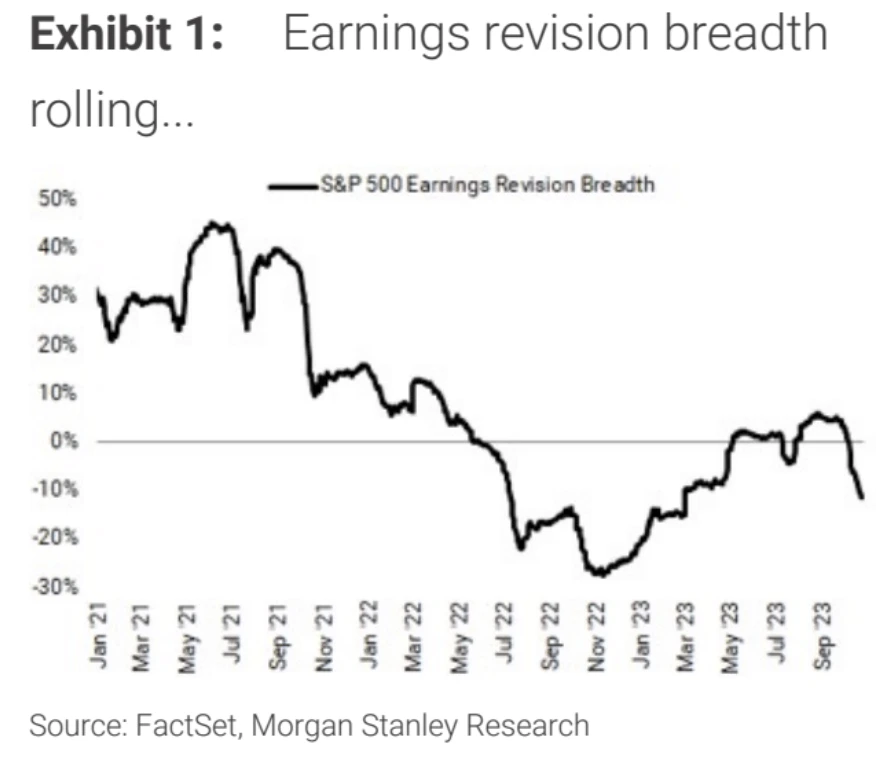 但是摩根士丹利持不同意见,该机构预期年末点位只有 3900 ,MS Michael Wilson 认为现在市场对企业Q4盈利预期颇高,且市场广度通常领先价格,但现在广度还是很窄(没有更多的股票参与上涨),看不到任何反弹的迹象。