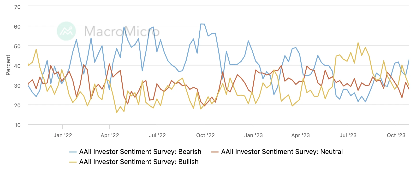 AAII 投资者调查,看空比例升高(35% -43% )至今年 5 月以来最高水平: