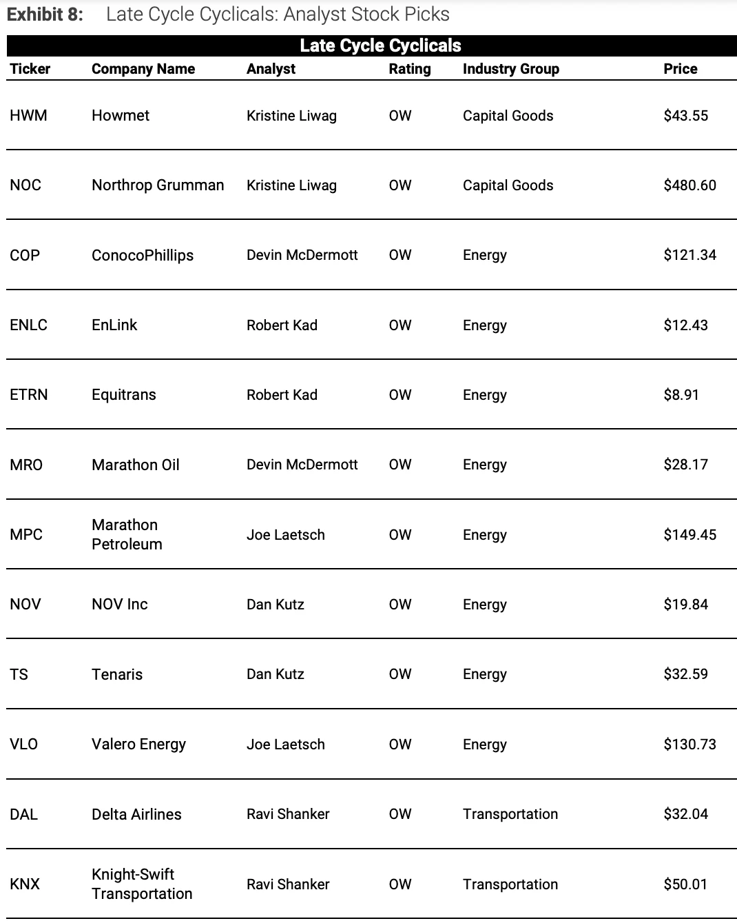 ( 5)后周期周期性板块:工业品如 Howmet,以及能源股如 Marathon Oil 和 Valero Energy。