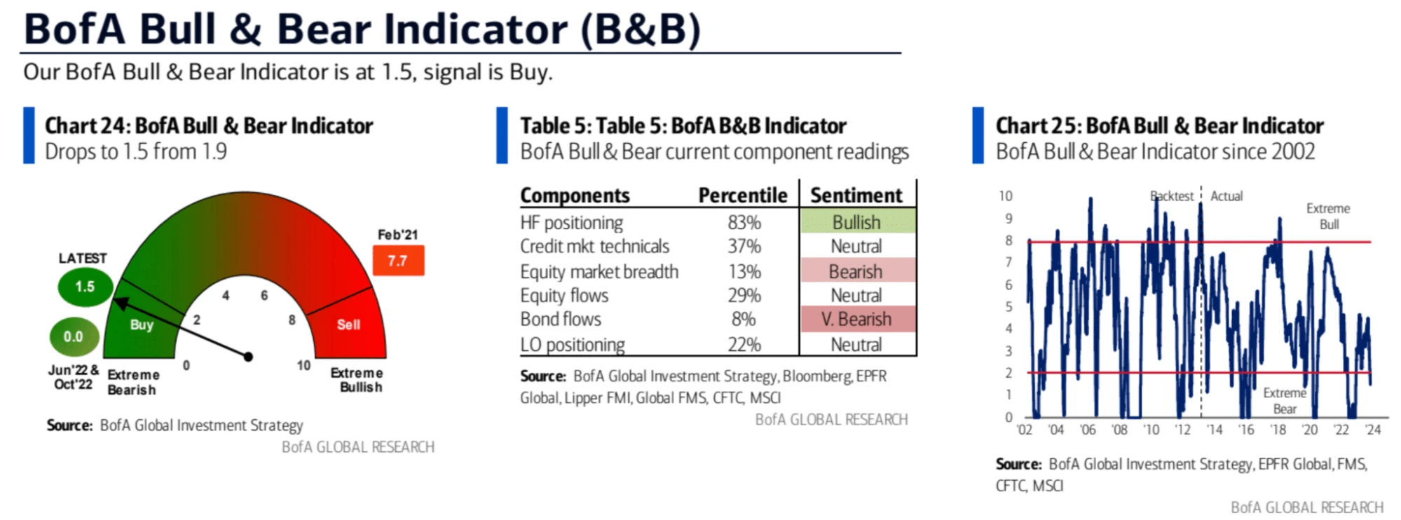 美银美林牛熊指标继续下降 1.9 – 1.5 ,属于买入区间: