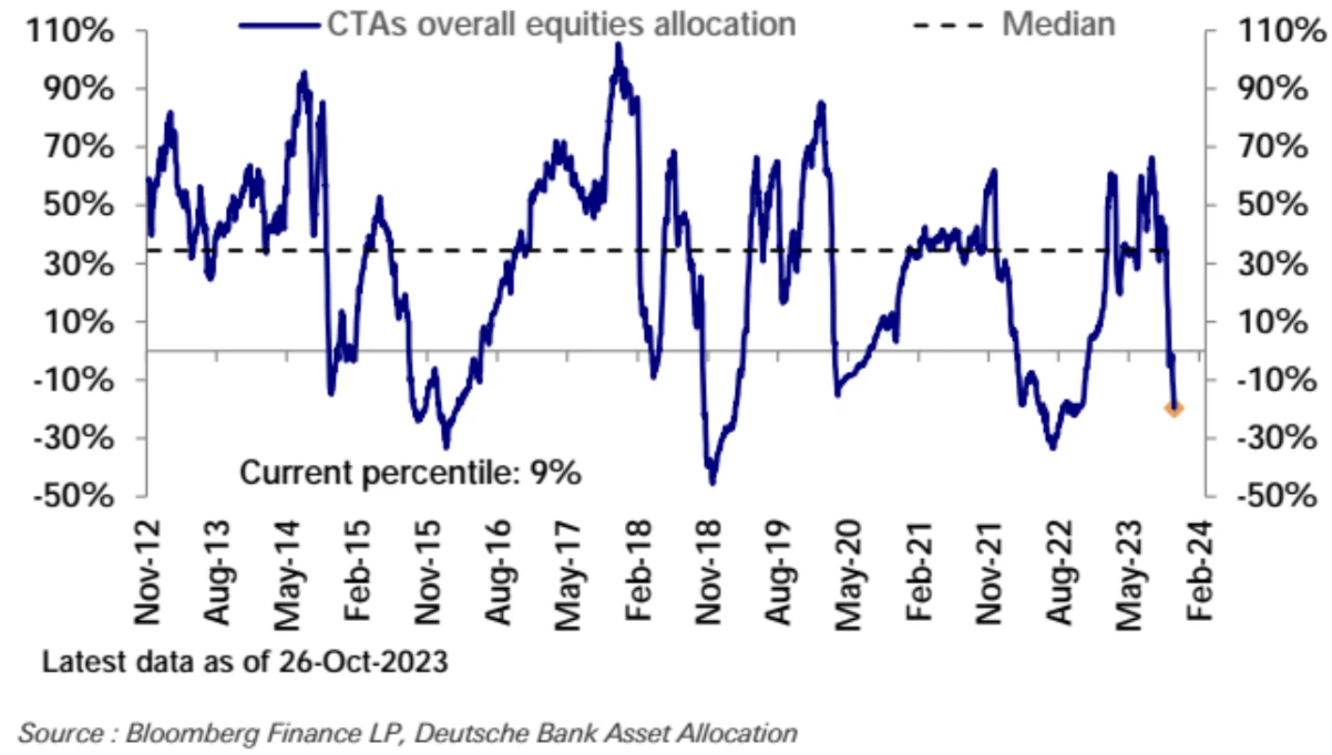 CTA 策略的仓位降至极端偏空的历史 9 百分位: