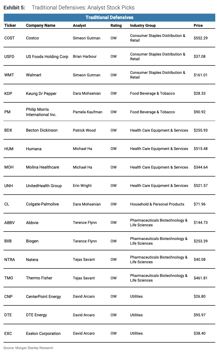 我们正处于周期后期环境(GDP 增速、企业利润增长等经济指标接近峰值,增速放缓;货币政策较为紧张;资产波动加大)。从历史上看,这对以下三个方向的企业形成了有利的业绩支持:( 1)传统防御性股票(医疗保健、必需消费品和公用事业),( 2)选择性增长机会(特别是波动率较低的增长股票,以及那些能够克服周期性风险的股票比如 AI),( 3)后周期周期性股票(工业和能源)