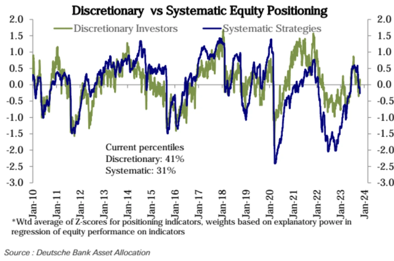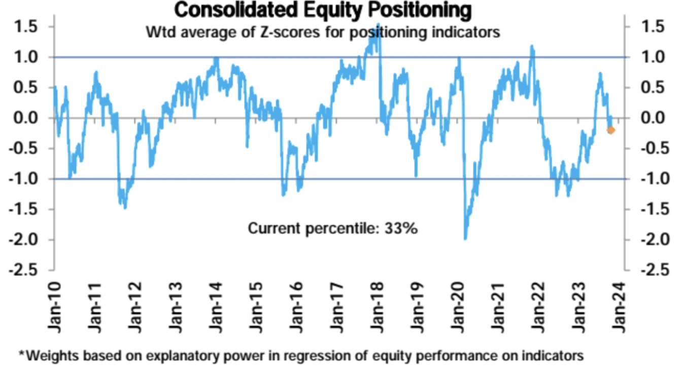 上周美股综合仓位小幅下降至历史 33 百分位,主观投资者持仓略有上升 37 – 41 百分位,而系统性策略持仓则大幅下降至更低位 36 – 31 百分位。