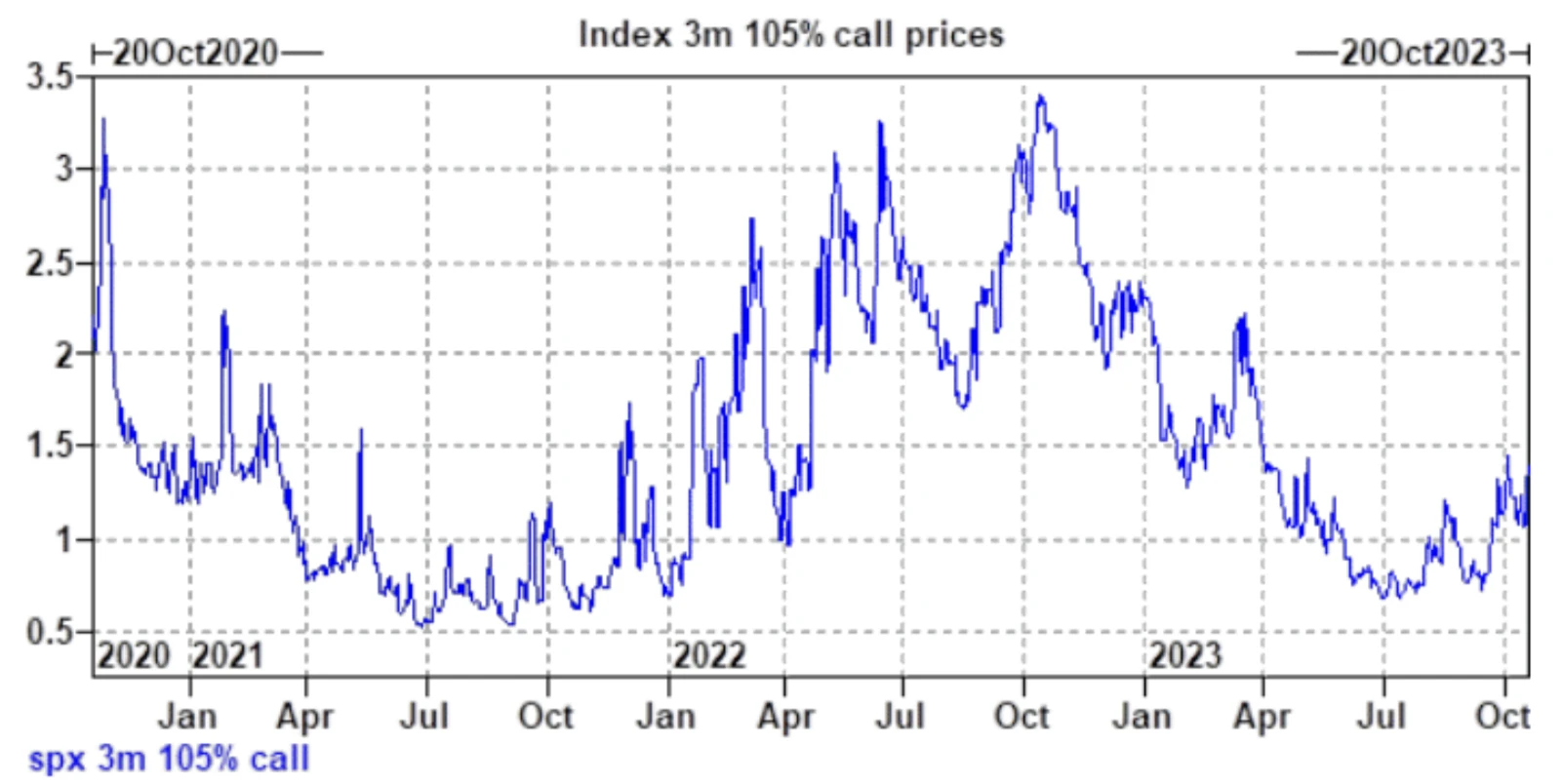 高盛预计不利因素将持续存在,“但我们会将成长前景进一步大幅下调视为买入机会”…现在买入 3 个月到期 105% 行权价看涨期权的绝对成本为 1.4% ,价格非常有吸引力,只要 SPX 能收复周五的跌幅就能覆盖成本。高盛依旧维持 SPX 年底 4500 点预期 Vs 当前 4137 点。