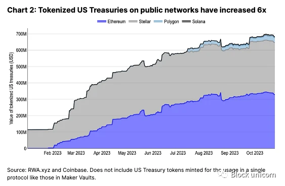 我们预计,机构对代币化的兴趣将持续到下一个加密市场周期,因为在高利率环境下,代币化的好处(资本效率、更快的结算、增加的流动性、降低的交易成本、改善的风险管理)是显而易见的。然而,发生了一些变化,那就是正在被代币化的基础资产的重点,传统金融机构正在关注美国国债、货币市场基金和回购协议。