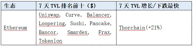 Dex combined TVL 11.56 billion,较上周增加 600 mln。Dex 24 小时交易量 1.45 billion, 7 天交易量 19 billion, 较上周增加 7 billion。