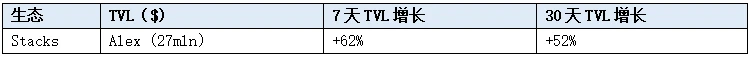 受 BTC 价格拉涨影响,BTC L2 Stacks 生态 DEX ALEX 7 天 TVL 增长明显(+ 62% )