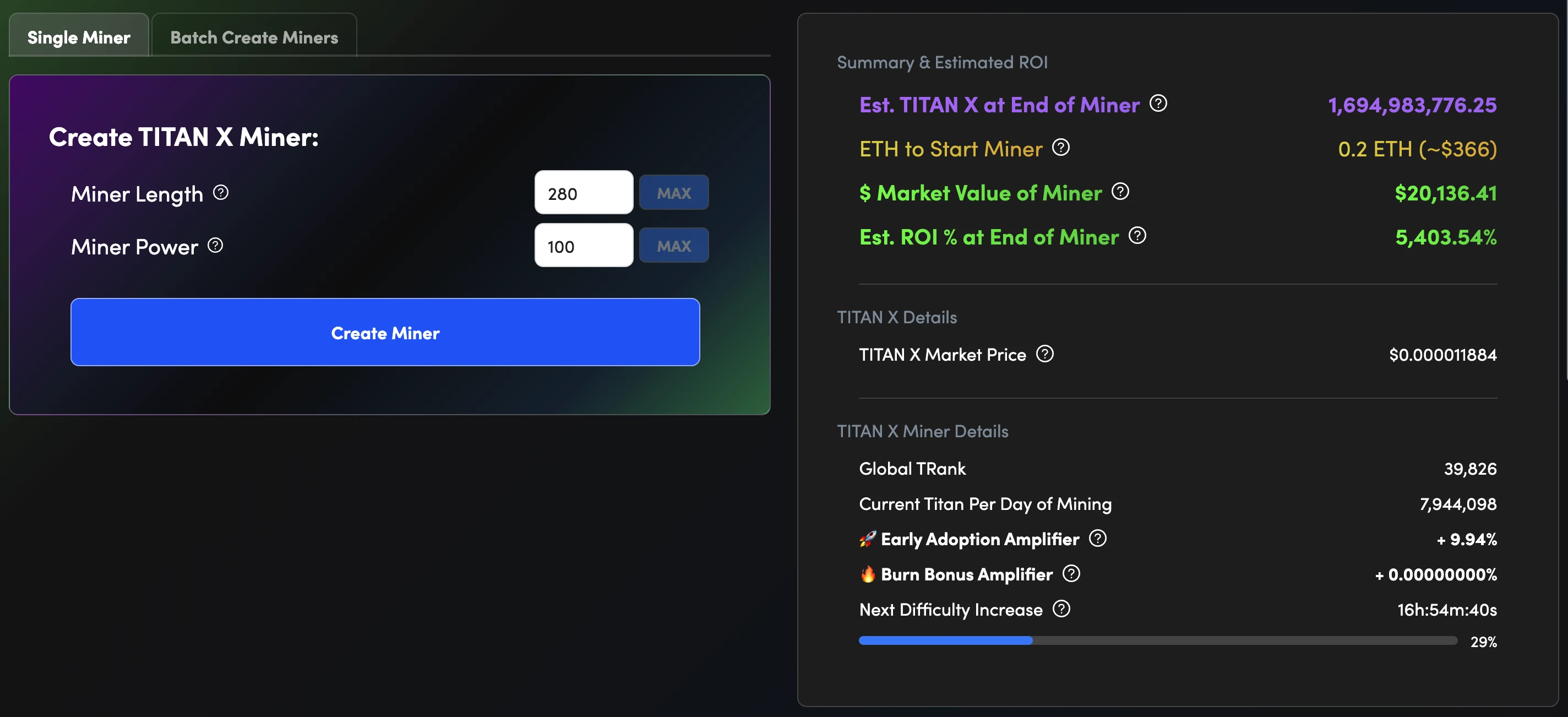 官方文档显示,TITAN X 拥有一种名为“虚拟矿机”的机制;借助虚拟矿机,用户可以通过质押 ETH 挖掘 TITANX。