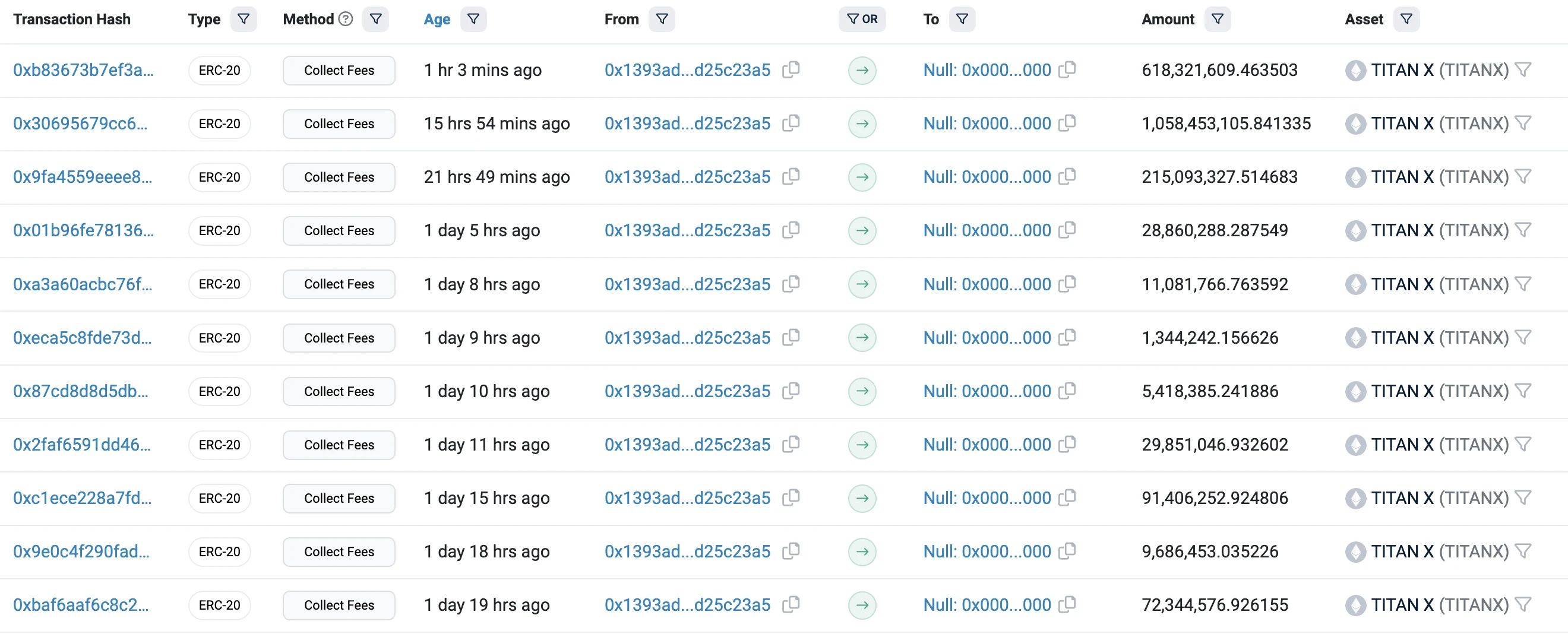 (TITANX 铸造合约的 Tx 数量)