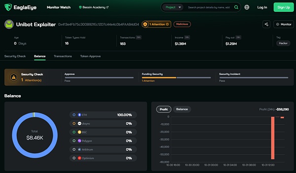 10月31日,Beosin旗下EagleEye监测显示,Unibot遭受黑客攻击,引起市场热议。