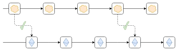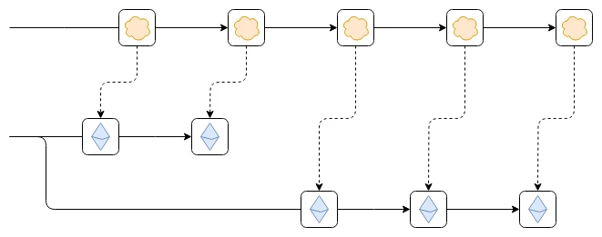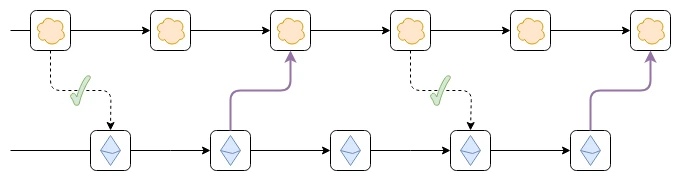 图中紫色的链接可以是哈希链接,也可以是验证以太坊共识的桥接合约。