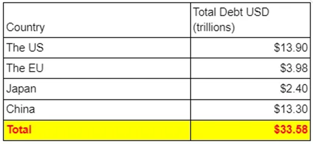 我和其他人对全球债务负担增加的预测并不是什么新鲜事。但在这篇文章的前面,我做了一个非常大胆的预测,在未来的 2-3 年里,所有主要的经济集团将比历史上任何时候都印更多的钱。这需要美国、日本和欧洲在同一时间做同样的事情。我希望他们都采取一致行动,因为他们的经济是相互联系的,他们的行动受到美国领导的二战后秩序的约束。