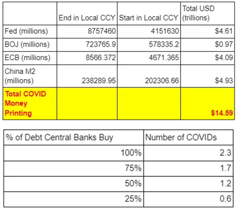 由于私营部门在新冠疫情期间被迫以 5000 年来最低的收益率购买政府债券,他们的投资组合坐实了价值数万亿美元的未实现损失。在这一轮债券发行中,私营部门将无法参与这么多本轮债务发行。因此,我的基本假设是,央行将购买至少 50% 的已发行债券。其结果是,从现在到 2026 年,全球法定货币供应量的增长将超过 COVID 期间的增长。