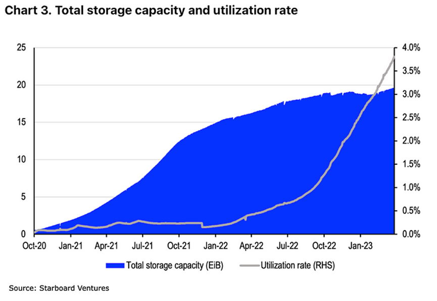 是的。FIL 较 2021 年 4 月的 ATH 下跌了近 99%。但更重要的是,价格/存储容量和价格/存储利用率都收缩了 99%。