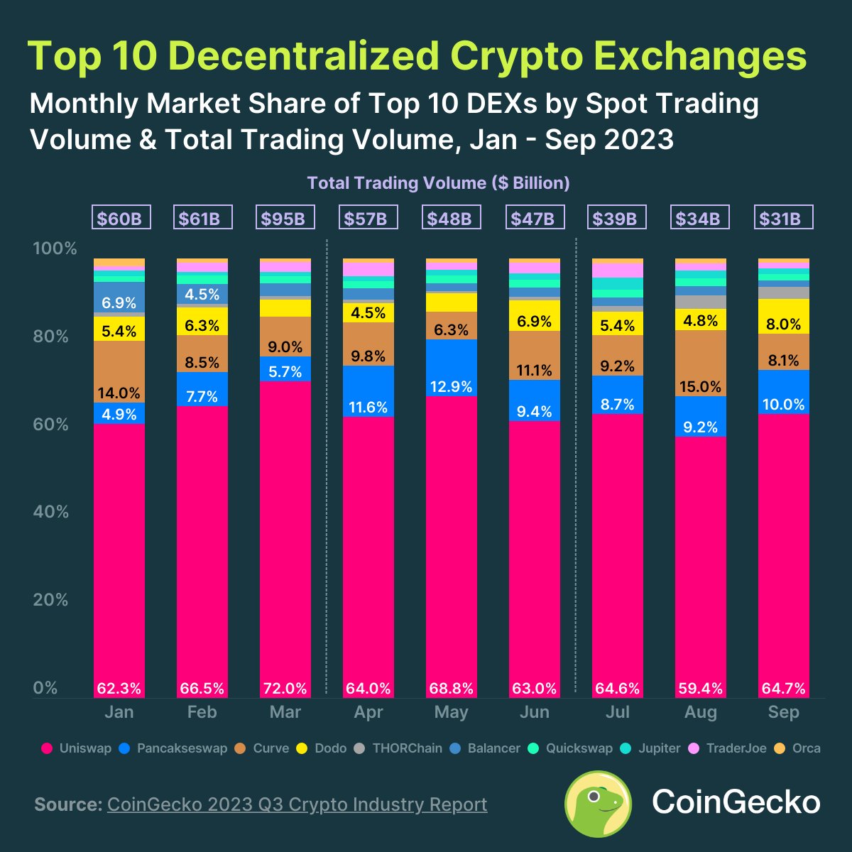 自2020年以来一直是DEX支柱的Sushi.com在2023年Q3跌出了前10名。