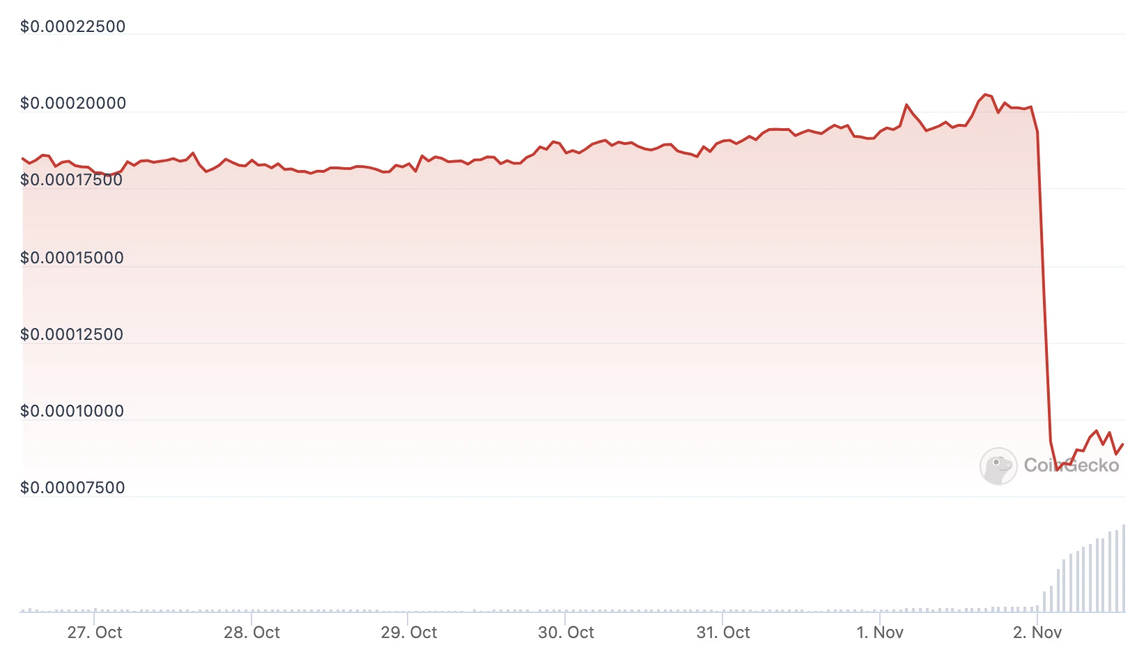 Coingecko 数据显示,在昨日 SEC 起诉后,SafeMoon 代币价格再次下跌超过 50 % ,目前仍未出现明显反弹,如下所示: