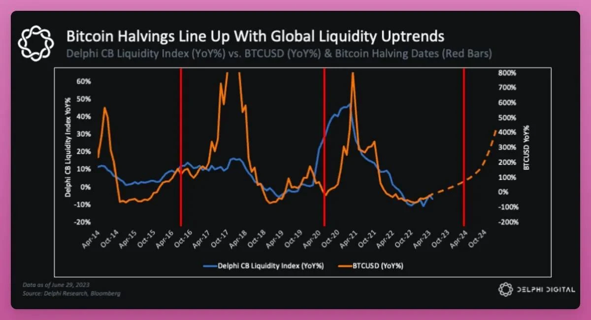 随着宏观催化剂的演化,它们与 2024 年 4 月的比特币减半完美契合。宏观周期的重复模式是为什么比特币如今如同过去一样走过了相似的轨迹。
