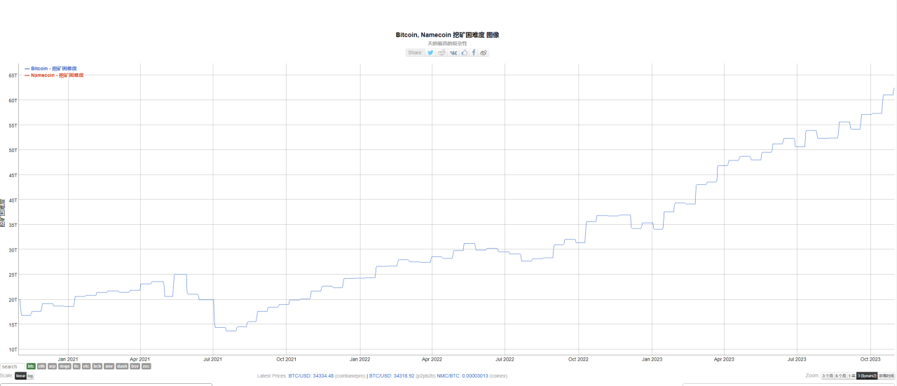 15 年后的今天,在 BTC 现货 ETF 的预期驱动下,BTC 迎来了剧烈的涨势。短短不到 2 天的时间,它从不足 30, 000 美元涨到了 35, 000 美元,并且当前的价位依然维持在 34, 000 美元以上。另一方面,比特币矿工热情高涨,挖矿难度再创历史新高。