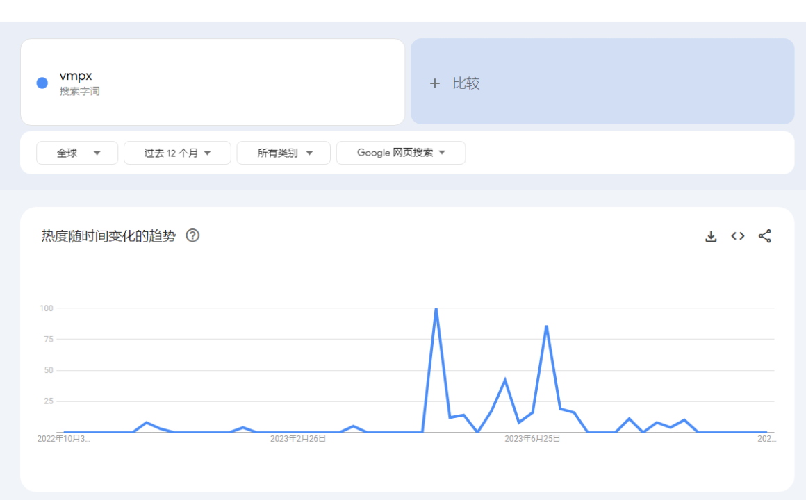 VMPX 总量 108, 624, 000 ,历史最高价超过 0.37 美元,现价 0.031 美元。VMPX 在 2023 年 5 ~ 7 月时热度较高。
