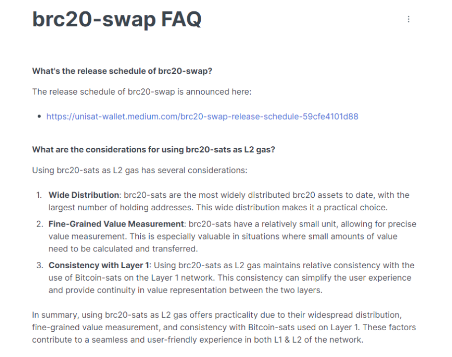 9 月 28 日,Unisat 发布了 BRC 20-Swap,并解释了将 SATS 作为 gas 的理由。