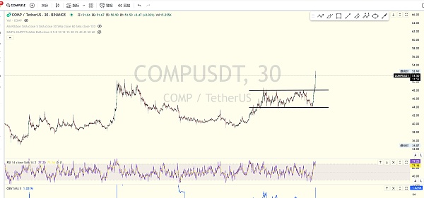 AAVE,前几天明确提出头肩底结构,已经有20%涨幅,很可观。