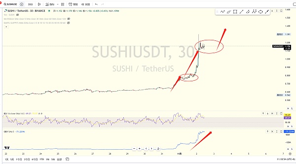 SUSHI,倾向于做一个小级别的盘整后继续向上,保持关注。