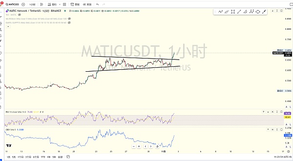 从三个主要币种的走势,可以看到都是选择了向上突破,且BTC和ETH目前都是到一个很小的压力位,那么我们的操作选择就是小回踩后做多为主。