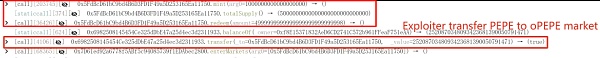 1.攻击者获取少量oPEPE,并将PEPE打入oPEPE市场,增加oPEPE市场中PEPE的余额从而操控oPEPE的汇率。