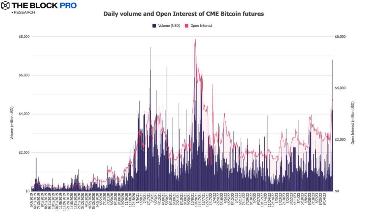 10、 10 月芝商所比特币期货未平仓量增长了 83.2% ,升至 35.6 亿美元,日均成交金额(daily avg volume)增幅达到 69% ,升至约 19.4 亿美元。