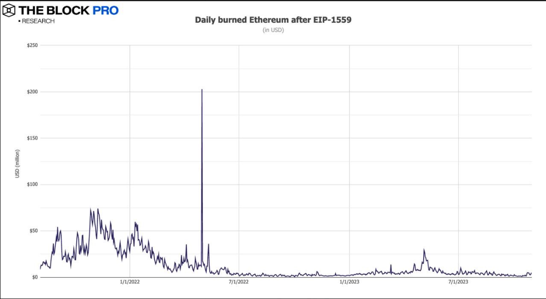 4、 10 月以太坊网络共销毁了 41, 348 枚 ETH,价值相当于 7030 万美元。数据显示,自 2021 年 8 月上旬实施 EIP-1559 以来,以太坊总计销毁了约 367 万枚 ETH,价值约合 103.1 亿美元。