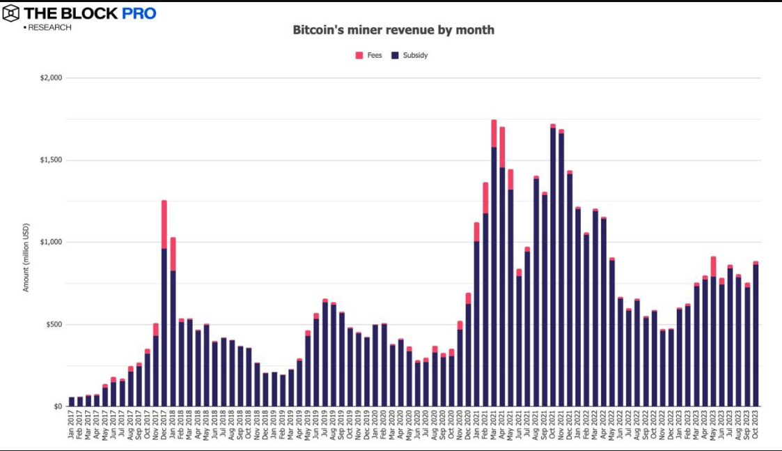 3、比特币矿工收入在 10 月份也进一步增长,升至 8.85 亿美元,涨幅为 17.4% ,同时以太坊质押收入增长了 8.6% ,升至 1.25 亿美元区间。