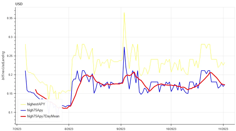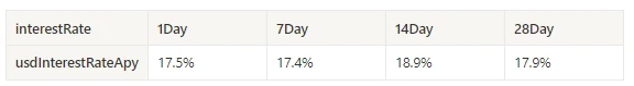 过去一周 USD 放贷年化收益平均为 17.5% ,利率稳定。