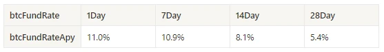 过去一周 BTC 资费平均年化收益为 11%