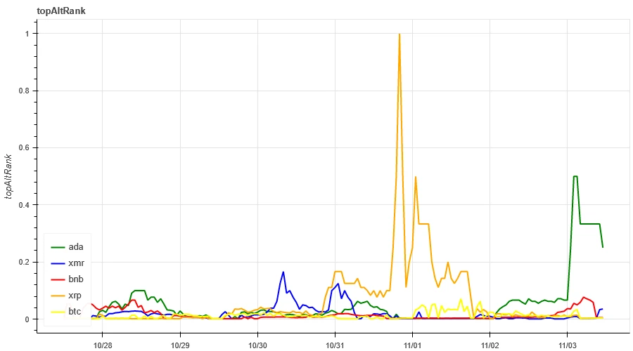 过去一周热度最高分别的是 ADA/XMR。